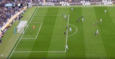 第16分钟,曼城前场一次精彩的配合,一脚直塞打穿埃弗顿右路防线,可惜萨维尼奥面对皮克福德的射门绵软无力,浪费一次绝佳的机会。