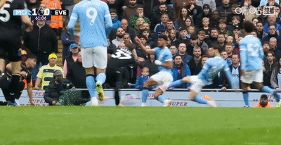 8场11球,哈兰德头顶脚踢独中两元,曼城2-0埃弗顿,格拉利什观战