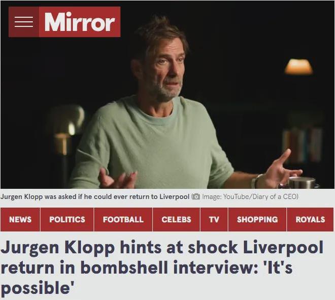 克洛普在作客The Diary of a CEO节目接受采访时暗示,他不排除未来重返利物浦执教!