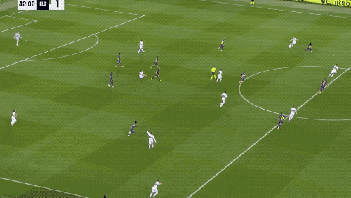 第43分钟,拉法·米尔中线附近启动,反越位成功,单刀破门,值得注意的是,这也是埃尔切本场比赛的第一次射门。