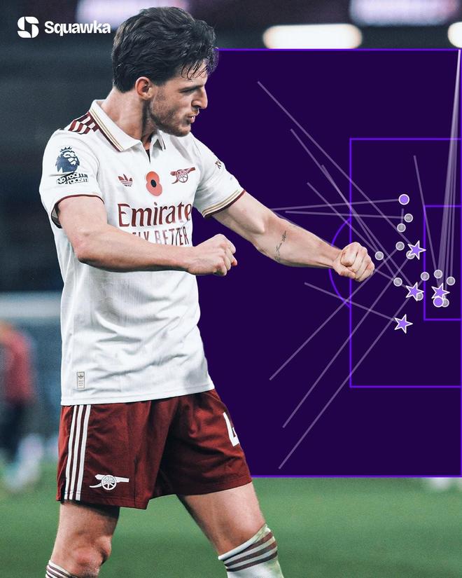 赖斯在2025年创造23次重大机会,英超球员同期最多